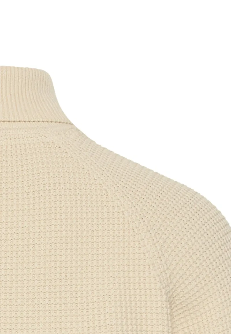 - Stehkragen: Bietet zusätzlichen Schutz vor Wind und verleiht dem Pullover einen modernen Look.