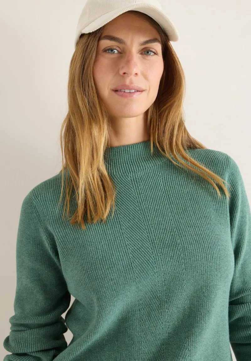 Der Strukturmix Pullover für Damen begeistert mit einem eleganten Turtleneck und faszinierenden Strukturdetails. Hergestellt aus 100% reiner Baumwolle, bietet er ein natürlich angenehmes Tragegefühl und ist die perfekte Ergänzung für lässige Outfits mit einem modischen Akzent.