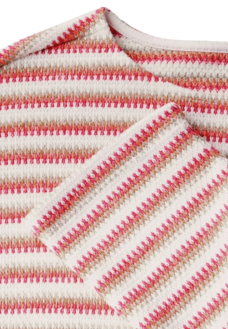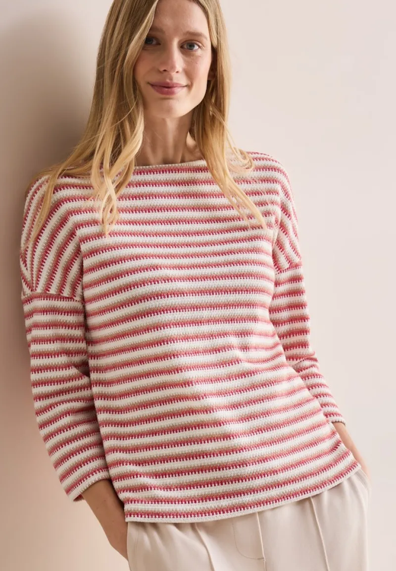 Das Strick-Look Shirt besticht durch seine feinen Strukturen und eleganten Details. Der klassische Ausschnitt und die passgenaue Schnittführung verleihen dir einen femininen und zugleich lässigen Look.