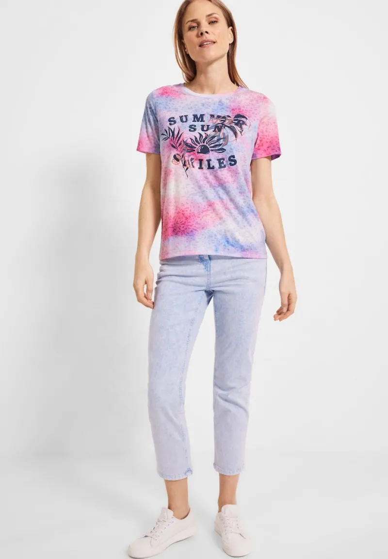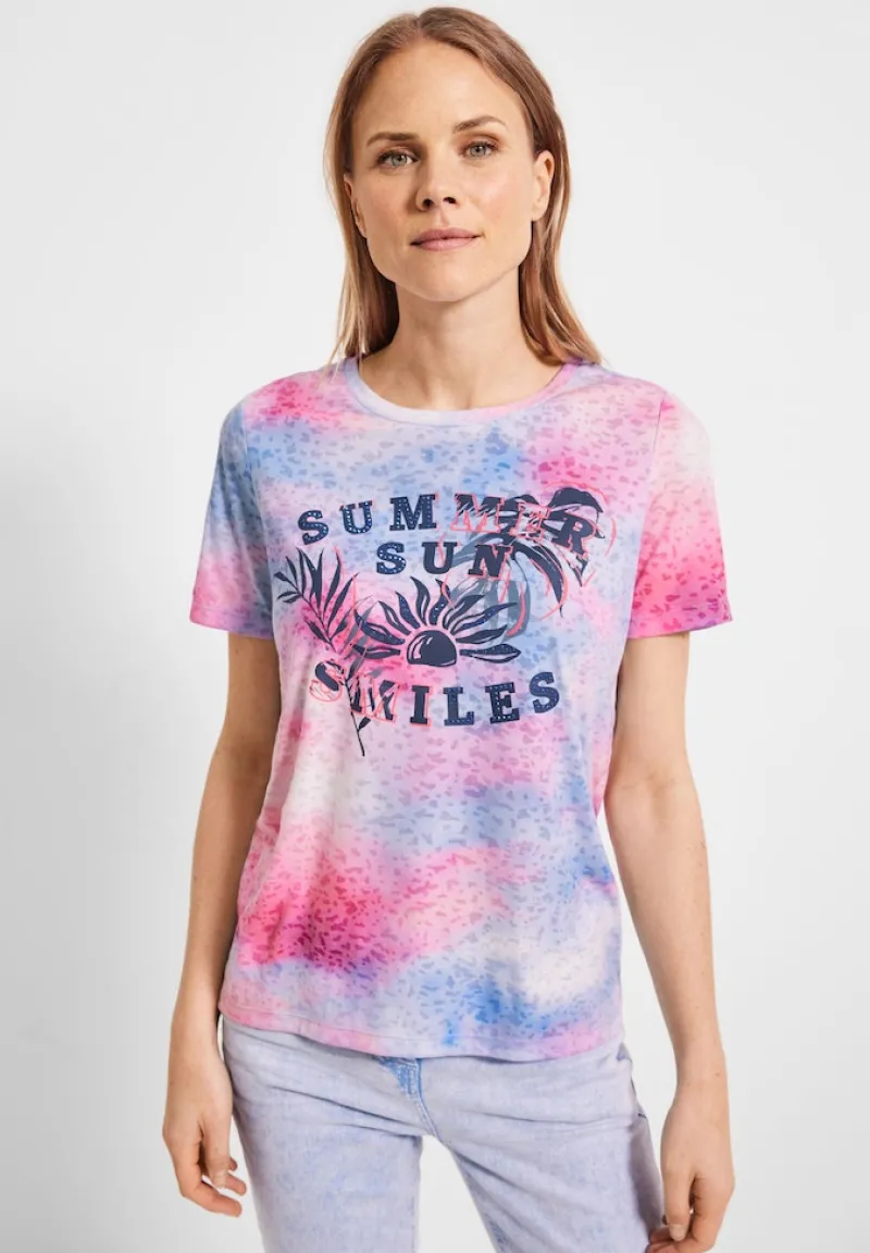 Sun and smile! Dieses coole Damen T-Shirt von CECIL begeistert mit einem vielseitigen Rundhalsausschnitt und einem unkomplizierten Look. Die einzigartige Burn Out Optik erhält durch Batik und Fotoprint eine extra Portion Style-Power. Ideal für alle, die modische und dennoch bequeme Kleidung schätzen.