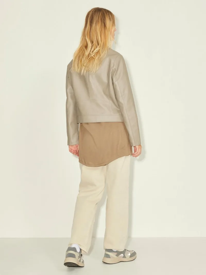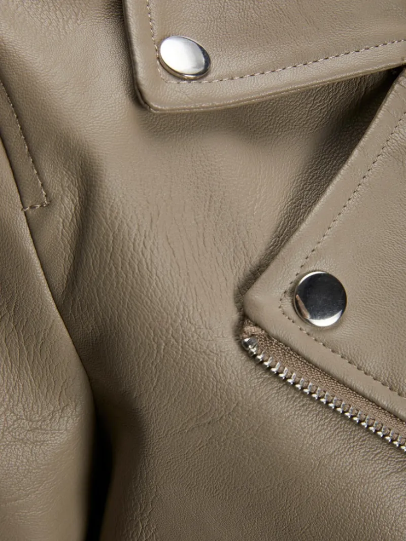 Die JXGAIL FAUX LEATHER BIKER JACKET NOOS besticht durch ihr zeitloses Design mit markanten Biker-Details. Der schicke Bandkragen und die langen Ärmel verleihen der Jacke einen coolen und zugleich eleganten Touch, der vielseitig kombinierbar ist.