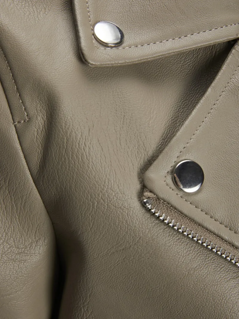 JXGAIL FAUX LEATHER BIKER JACKET NOOS smoke green