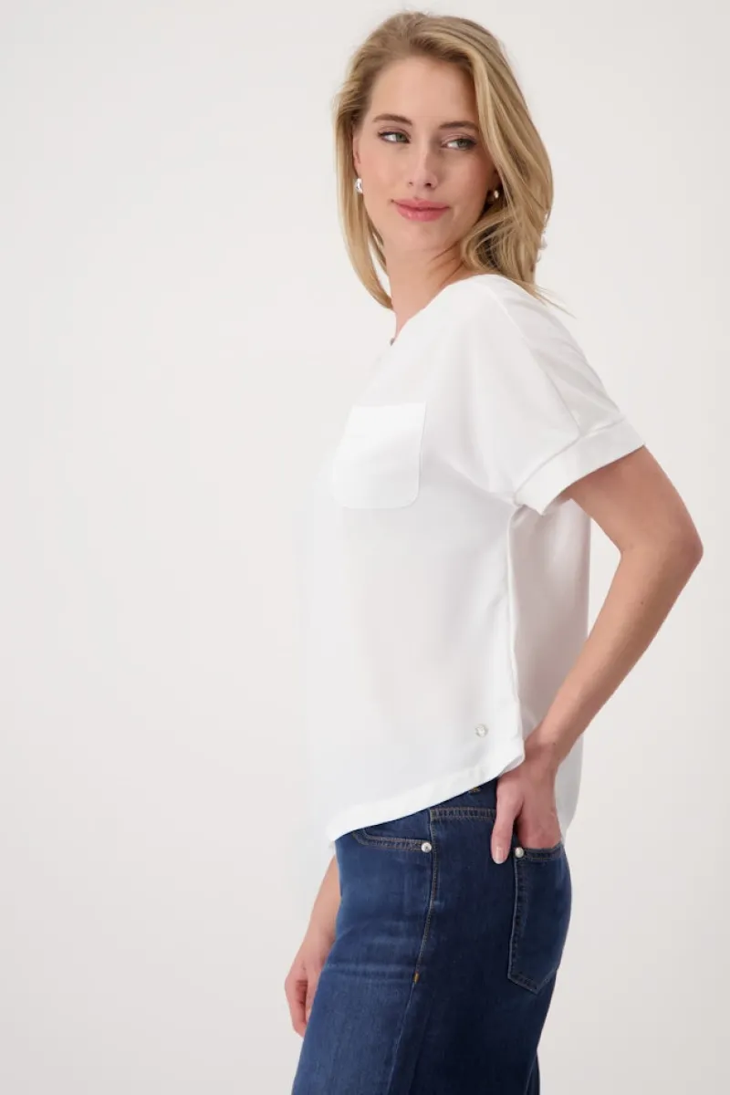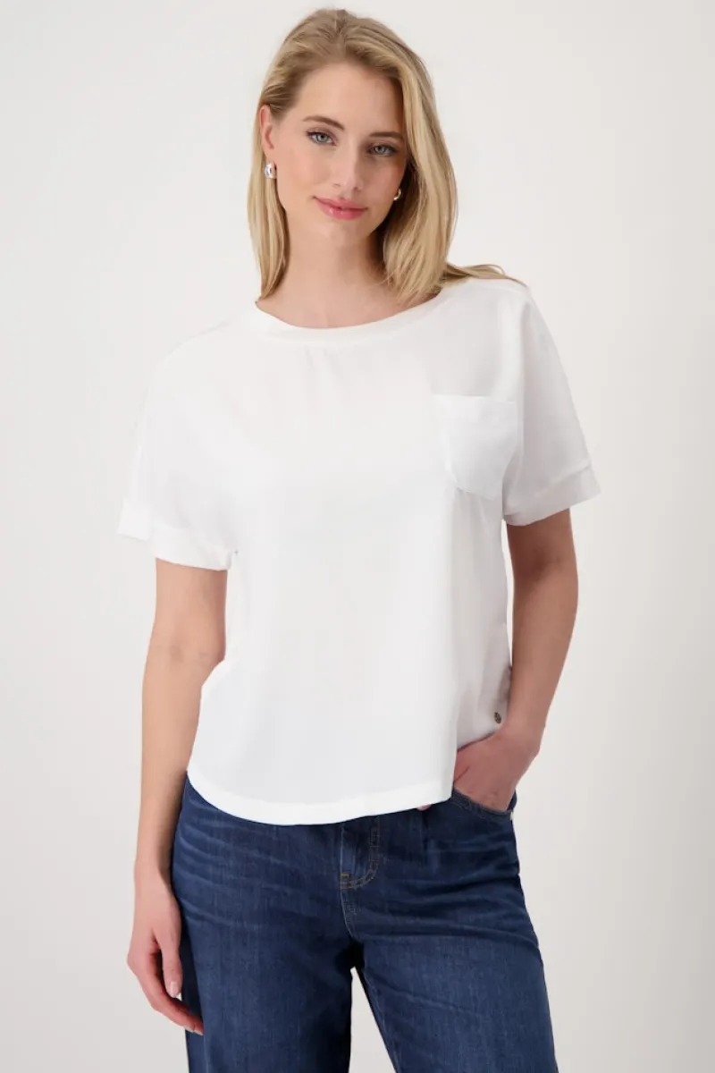 Vorn Bluse, hinten Shirt. Die angenehme Kombination macht das Blusenshirt zu einem wahren Wohlfühlwunder. Perfekt für jede Gelegenheit, sorgt dieses vielseitige Kleidungsstück dafür, dass du stilvoll und komfortabel zugleich unterwegs bist.