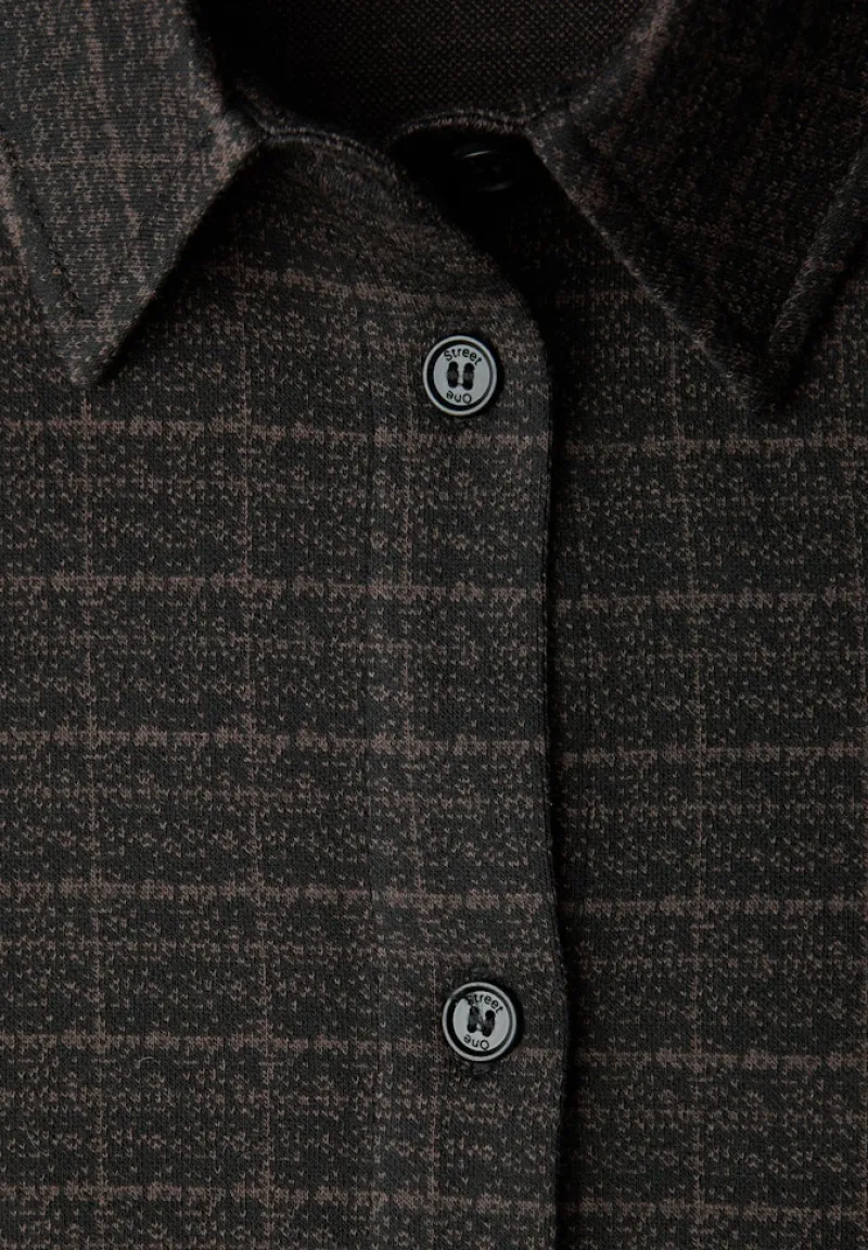 Diese Hemdbluse von Street One für Damen überzeugt mit einem klassischen Karomuster in strukturierter Jacquard-Optik. Hemdkragen, Knopfleiste und seitliche Schlitze machen sie zum modernen Klassiker für deinen Alltag. Die Langarmbluse ist ein stilvoller Begleiter für deine Everyday-Looks und lässt sich vielseitig kombinieren.