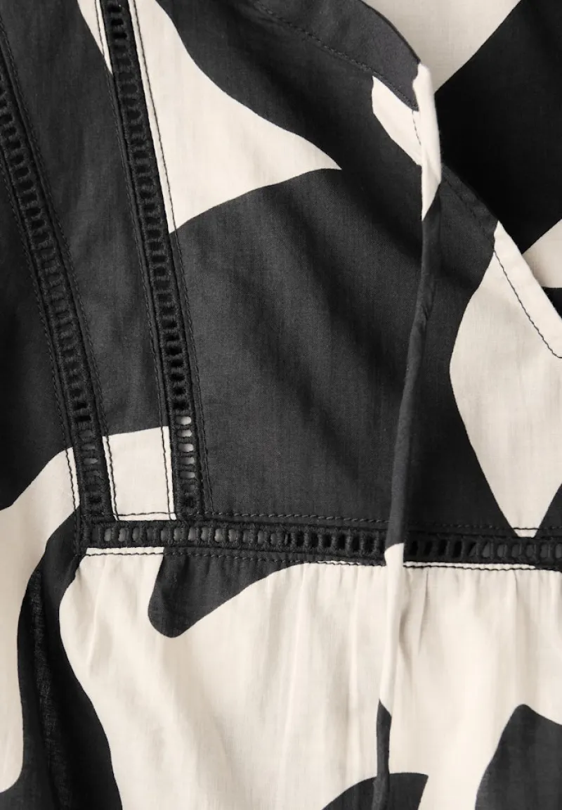 Die Print-Bluse mit Tape-Details ist vielseitig einsetzbar und lässt sich perfekt zu Jeans, Röcken oder Chinos kombinieren. Ob im Büro, beim Stadtbummel oder bei einem Treffen mit Freunden – diese Bluse passt zu jeder Gelegenheit und unterstützt dich dabei, immer gut auszusehen.