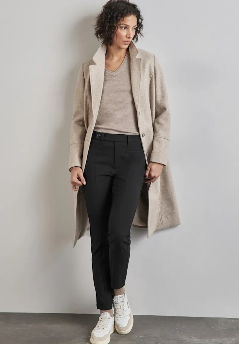 Entdecke die perfekte Mischung aus Stil und Komfort mit unserer Slim Fit Hose für Damen. Diese Hose besticht durch ihre schlanke Passform, die hohe Taille und die schmalen Beine, die eine moderne und feminine Silhouette zaubern. Die seitlichen Taschen bieten nicht nur praktischen Stauraum, sondern setzen auch modische Akzente.