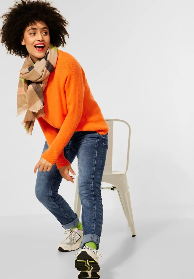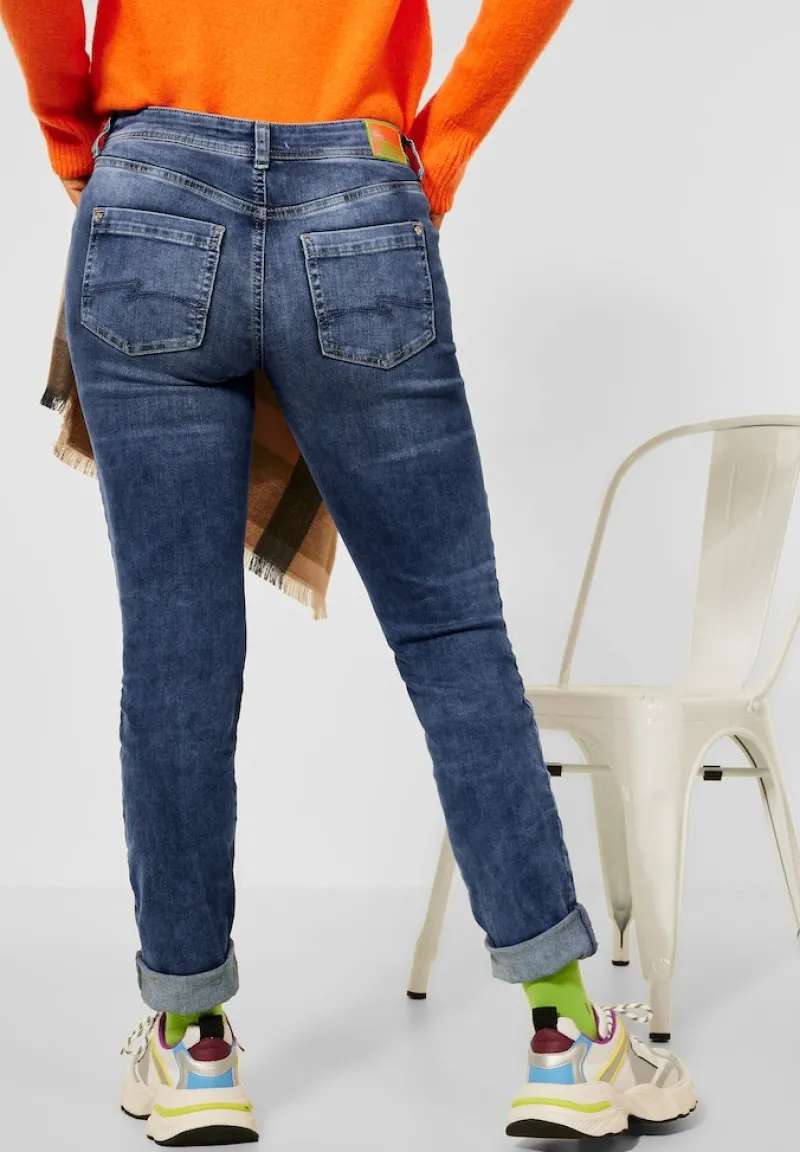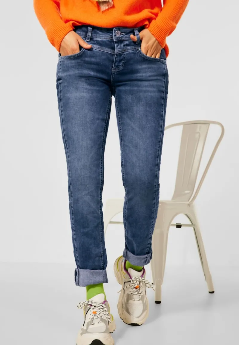 Denim moments! Die Casual Fit Jeans im Style Jane von Street One ist dein neuer Alltagsbegleiter, wenn du Wert auf Komfort, moderne Silhouette und unkomplizierten Style legst. Die Jeans kombiniert einen bequemen Middle Waist Schnitt mit schlanken Slim Legs und einem klassischen 4-Pocket-Design. Reißverschluss und Knopf sorgen für einen sicheren Halt und eine vertraute Passform — ideal für deinen Casual-Look.