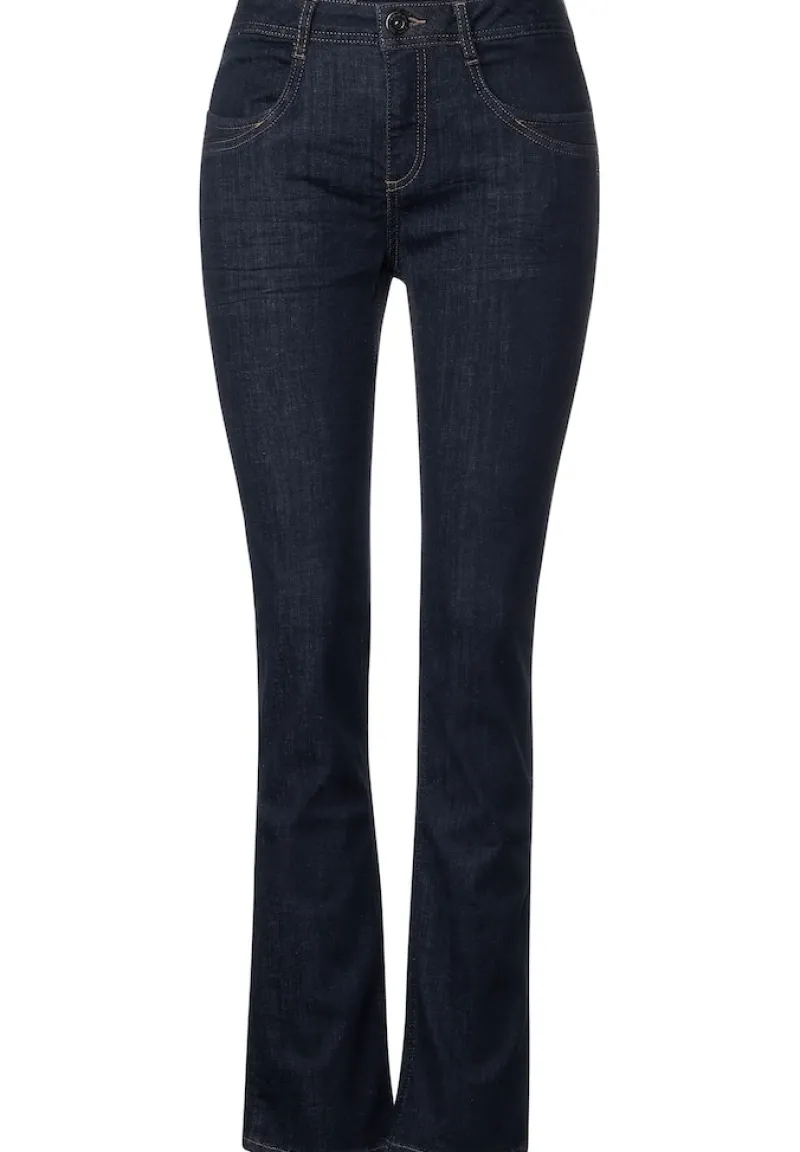 Der klassische 4-Pocket-Style wird durch einen praktischen Reißverschluss mit Knopf ergänzt, der eine einfache Handhabung garantiert. Diese Damenjeans ist ein vielseitiges Kleidungsstück, das sich mühelos zu verschiedenen Outfits kombinieren lässt – ob im Alltag, bei der Arbeit oder in der Freizeit.