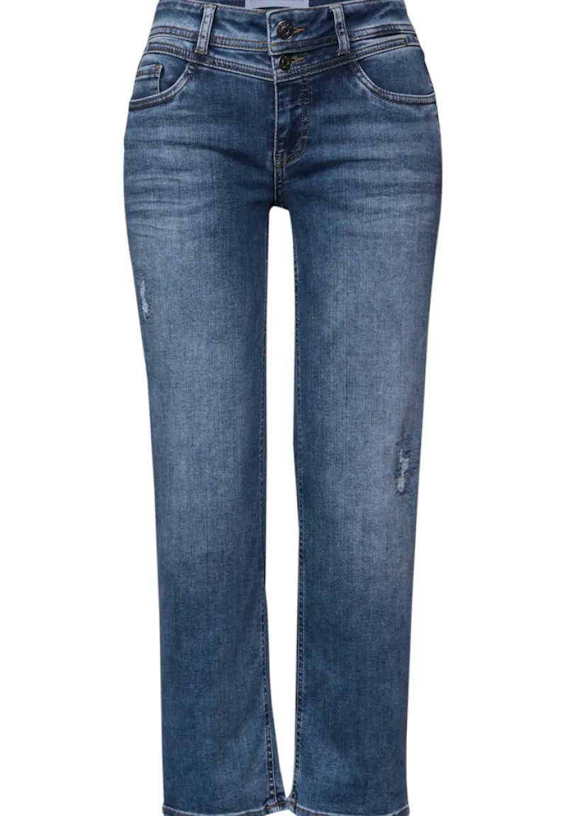 Entdecke die Destroyed Look Jeans — eine moderne Jeanshose von Street One, die lässigen Streetstyle mit komfortablem Tragegefühl verbindet. Die Jeans kommt im Casual Fit mit Mid Waist und Straight Legs und besticht durch authentische Destroyed-Details sowie eine charakteristische Denim-Waschung. Der hochwertige Baumwollmix mit Stretchanteil sorgt für Bewegungsfreiheit und Formstabilität, sodass du dich den ganzen Tag wohlfühlst.