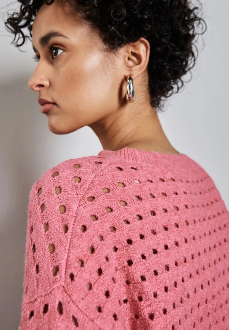 Entdecke den perfekten Mix aus Stil und Komfort mit unserem Strukturpullover sugar coral mel. Das einzigartige Lochmuster und der klassische Rundhalsausschnitt verleihen deinem Outfit moderne Akzente. Der weiche Materialmix sorgt für ein angenehm leichtes Tragegefühl, ideal für den Alltag oder besondere Anlässe.