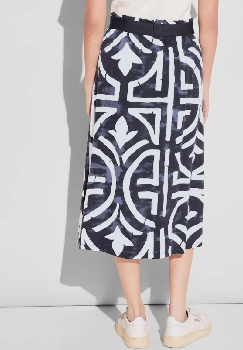 Mit seinem elastischen Bund und dem sorgfältig geschnittenen Design liegt der Print Rock deep blue perfekt auf deiner Figur und bietet den ganzen Tag über hohen Tragekomfort. Die vielseitige Passform sorgt dafür, dass sich der Rock auch bei wechselnden Temperaturen wohl anfühlt.