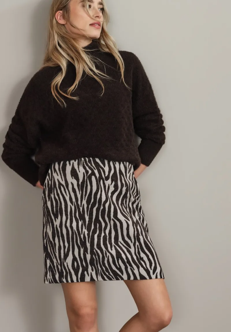 Worauf wartest du noch? Ergänze deine Garderobe mit dem einzigartigen Zebra Jacquard Rock und setze stilvolle Akzente in deinem Alltag. Bestelle jetzt und genieße modische Vielfalt und erstklassigen Komfort!