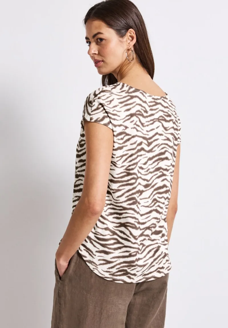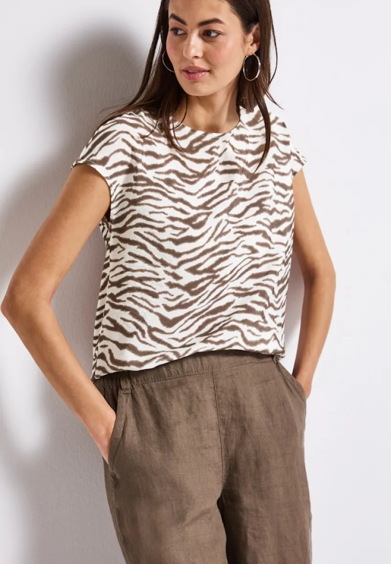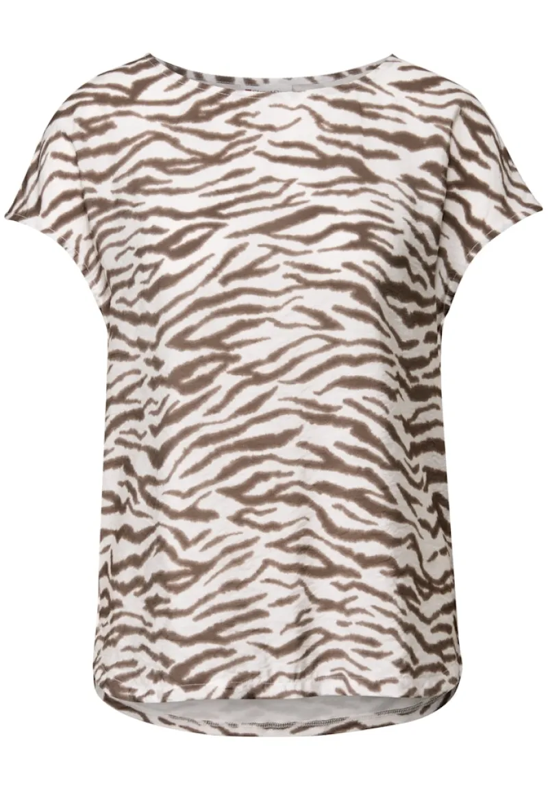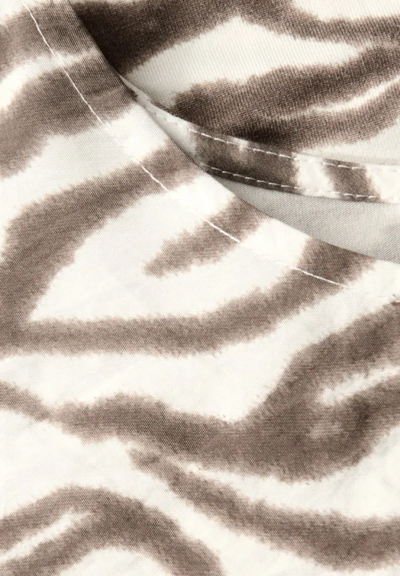 Erlebe den perfekten Sommerlook mit unserem gemusterten Shirt für Damen. Das grafische Muster in Nomad Brown zieht alle Blicke auf sich und verleiht deinem Outfit eine trendige Note. Der U-Boot-Ausschnitt und die Dropped Shoulders sorgen für eine moderne Leichtigkeit und ein angenehmes Tragegefühl, das dich den ganzen Tag über begleitet.