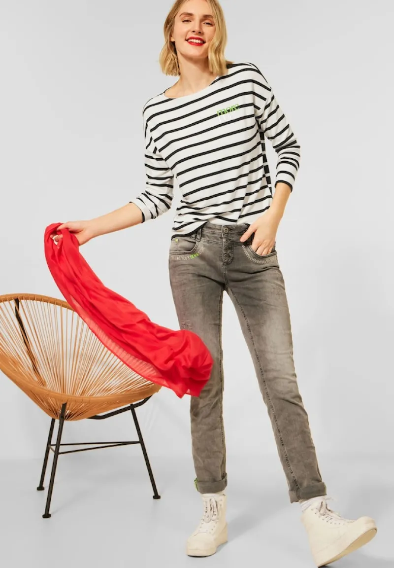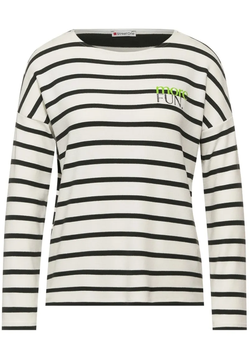 Das zeitlose Design mit dezentem Streifenmix macht dieses Langarmshirt zu einem vielseitigen Kleidungsstück. Kombiniere es mühelos mit Jeans, Röcken oder eleganten Hosen für einen stilvollen Look, der immer passt.