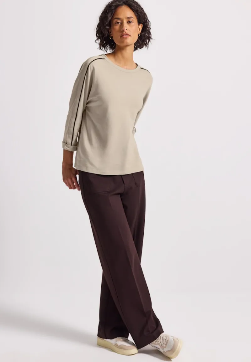 Unser Shirt mit Galonstreifen morning beige ist die perfekte Wahl für moderne Frauen, die Wert auf Stil und Komfort legen. Die Kombination aus hochwertigen Materialien und durchdachtem Design macht es zu einem unverzichtbaren Teil deiner Garderobe.