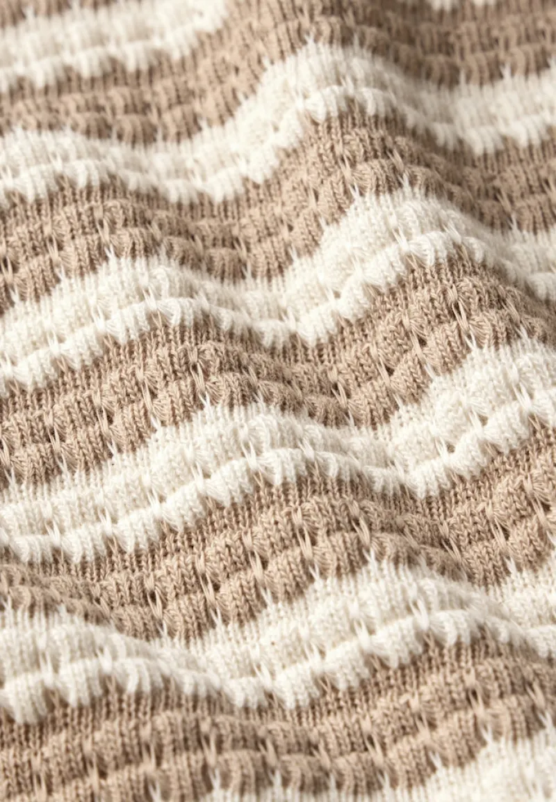 Das Streifenshirt besticht durch ein klassisches Streifenmuster, das ihm eine zeitlose Ästhetik verleiht. Der moderne Strick-Look sorgt für eine interessante Textur und macht das Shirt zum idealen Begleiter für verschiedene Anlässe.