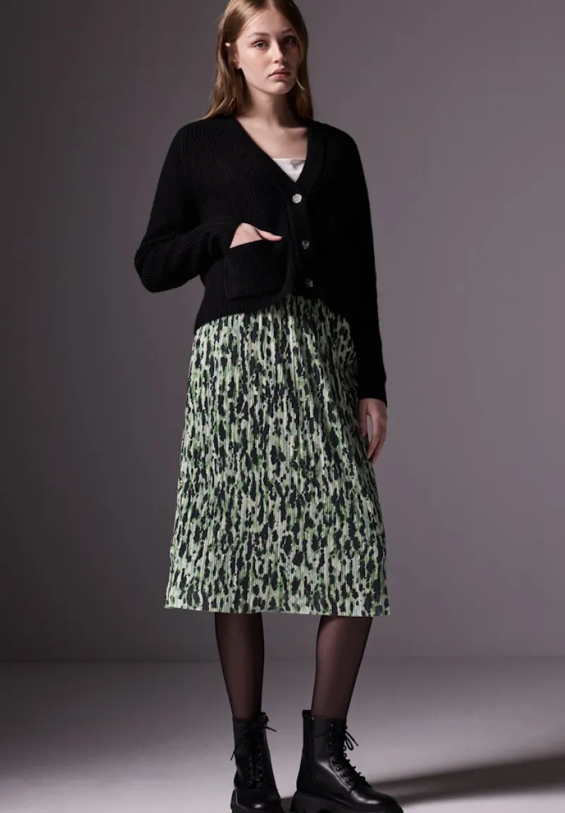 Ob im Büro, bei einem gemütlichen Abendessen oder während der Freizeit – der bedruckte Plissée-Mesh-Rock passt sich mühelos deinem Lebensstil an. Kombiniere ihn mit einem schicken Blazer für einen professionellen Look oder mit einem lässigen Top für einen entspannten Alltag. Dank seines zeitlosen Designs ist dieser Rock die ideale Ergänzung für jede Garderobe.