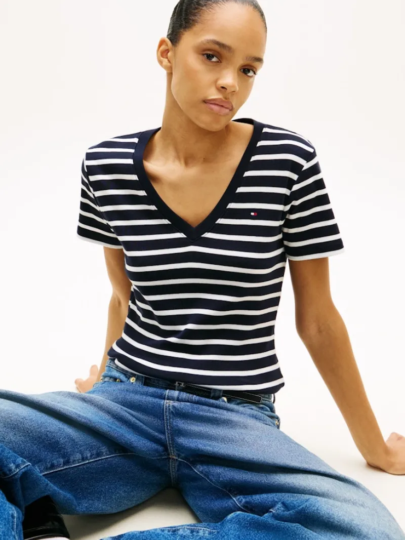 SLIM CODY V-NK SS breton stp- blue spell- ecru