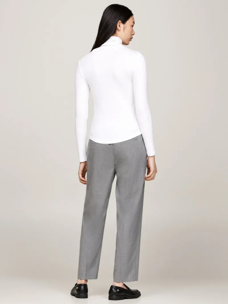 Das schlichte und zugleich raffinierte Design macht dieses Kleidungsstück vielseitig kombinierbar. Der rollkragenbetonte Schnitt und die feine Ribbing verleihen dem Outfit eine zeitlose Eleganz, die sich sowohl im Alltag als auch bei besonderen Anlässen bestens macht.