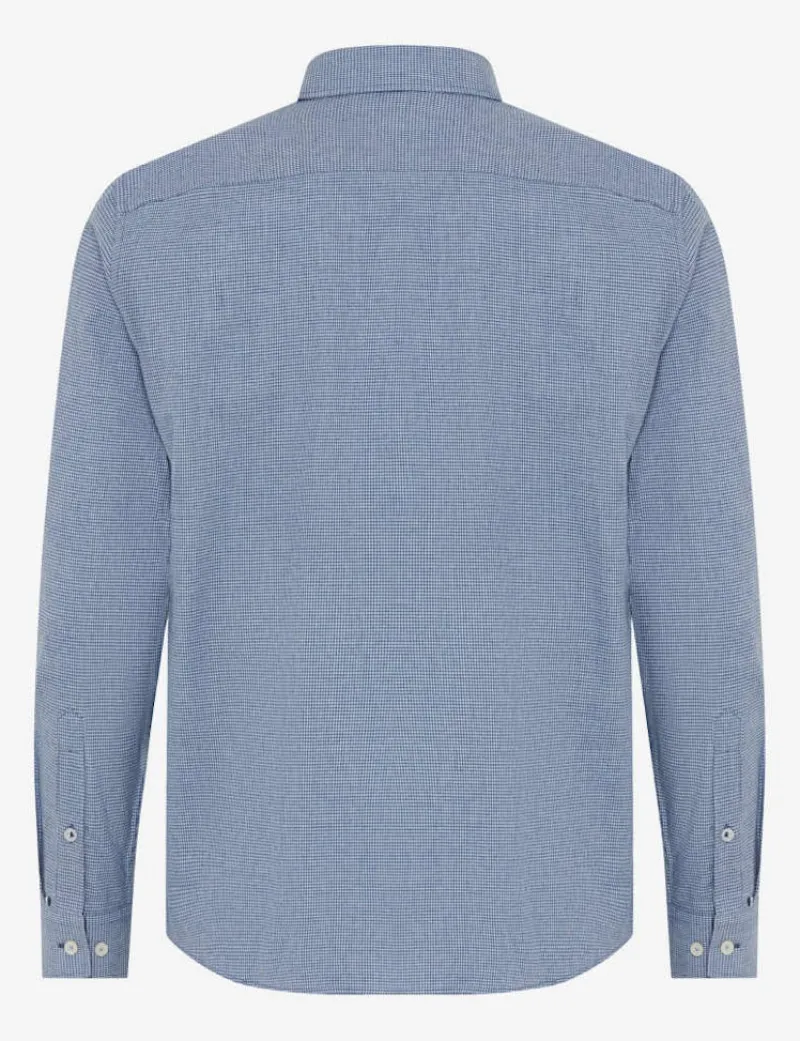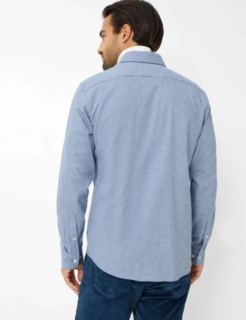 Mit seinem dezenten Pepita-Muster in kombinationsfreundlichen Blautönen bringt das Hemd smarte Akzente in deine Garderobe. Die leicht taillierte Passform verleiht dir eine moderne Silhouette, während der sportive Button-Down-Kragen und die durchgehende Knopfleiste den Look strukturiert und maskulin abrunden.