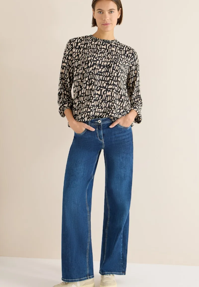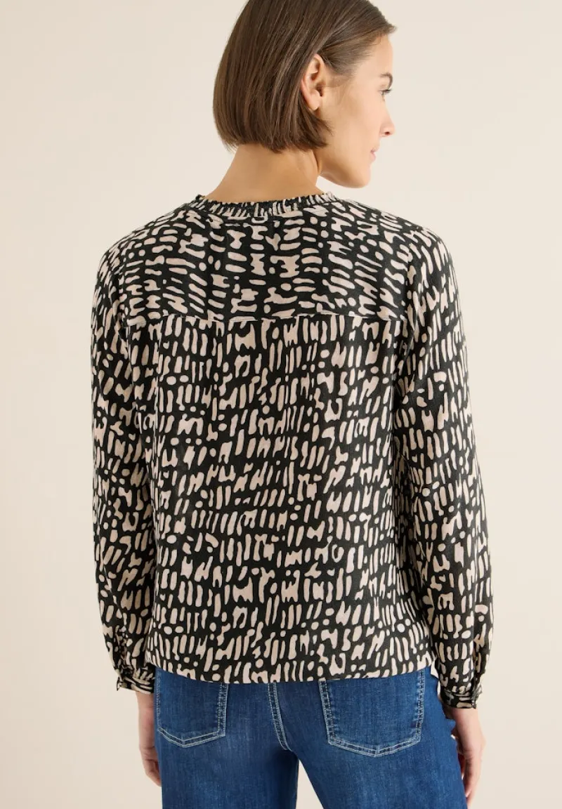 Entdecke die gemusterte Damenbluse von Cecil: Die Bluse mit Smock-Ausschnitt kombiniert ein grafisches Muster mit charmanten Details wie einem dezenten Smock-Ausschnitt und einem elastischen Saum. Der softe Fall der 100% Viskose sorgt für ein angenehmes Tragegefühl und macht diese Damenbluse zur perfekten Wahl für stilvolle Casual-Styles und feminine Alltagsoutfits.