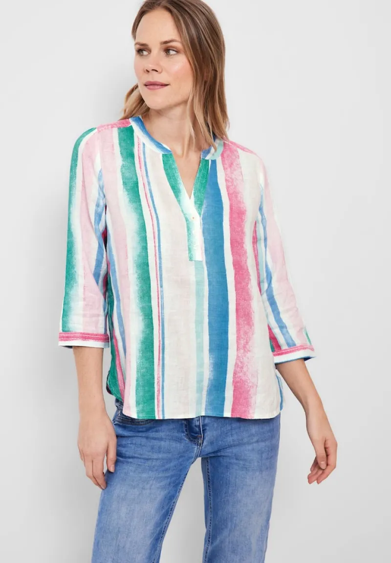 Das zeitlose Streifenmuster verleiht der Bluse eine klassische und dennoch moderne Note. Die dezenten Farben machen sie vielseitig kombinierbar – perfekt für das Büro, entspannte Wochenendausflüge oder besondere Anlässe.