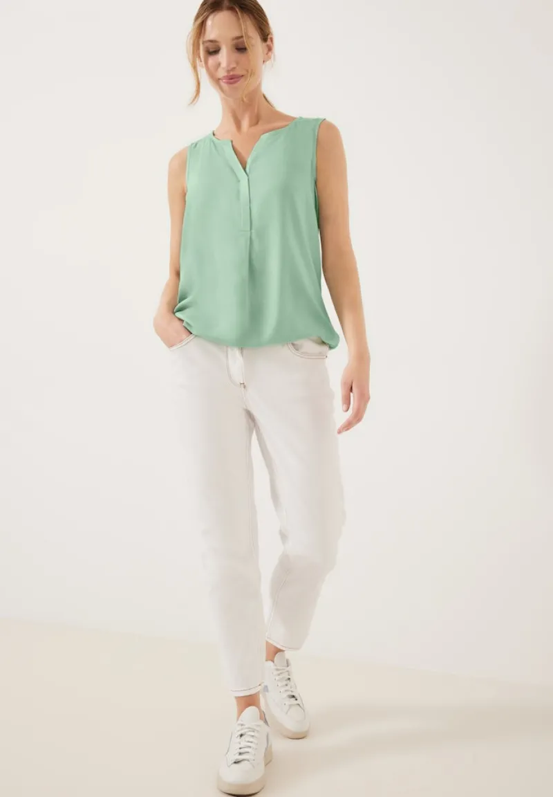 Unser Blusentop besteht aus 100% Viskose, einem weichen und atmungsaktiven Material. Viskose sorgt für ein angenehmes Tragegefühl und ermöglicht eine optimale Luftzirkulation, sodass du dich den ganzen Tag über frisch fühlst.