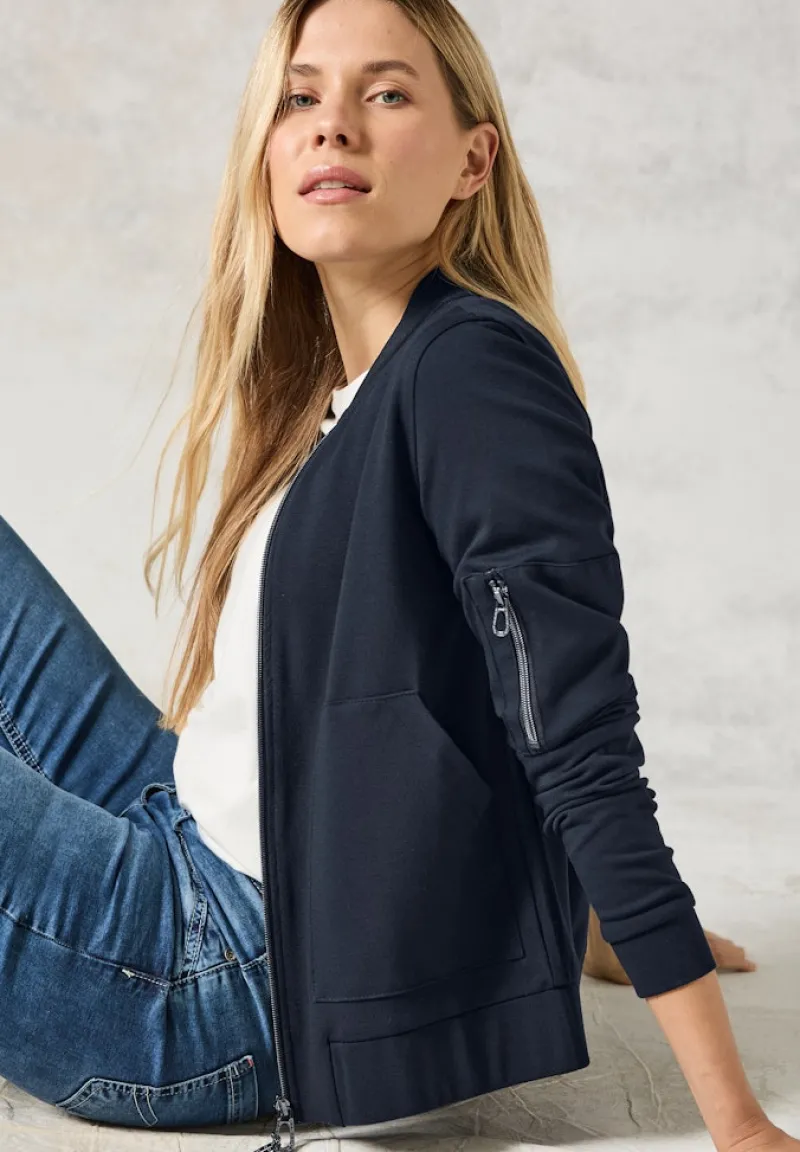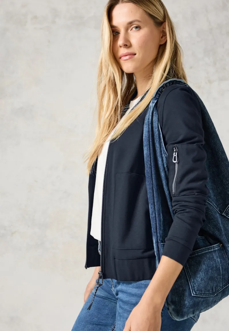 - Langärmel mit Bündchen und praktischer Reißverschlusstasche