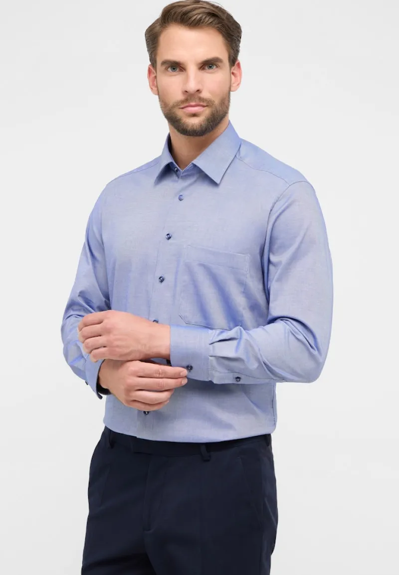 Unser COMFORT FIT Hemd kommt mit einem klassischen Kent-Kragen und einem normal gerundeten Saum, der es ermöglicht, das Hemd auch ganz leger über der Hose zu tragen. Ob im Büro oder in der Freizeit – dieses Hemd ist immer die richtige Wahl.
