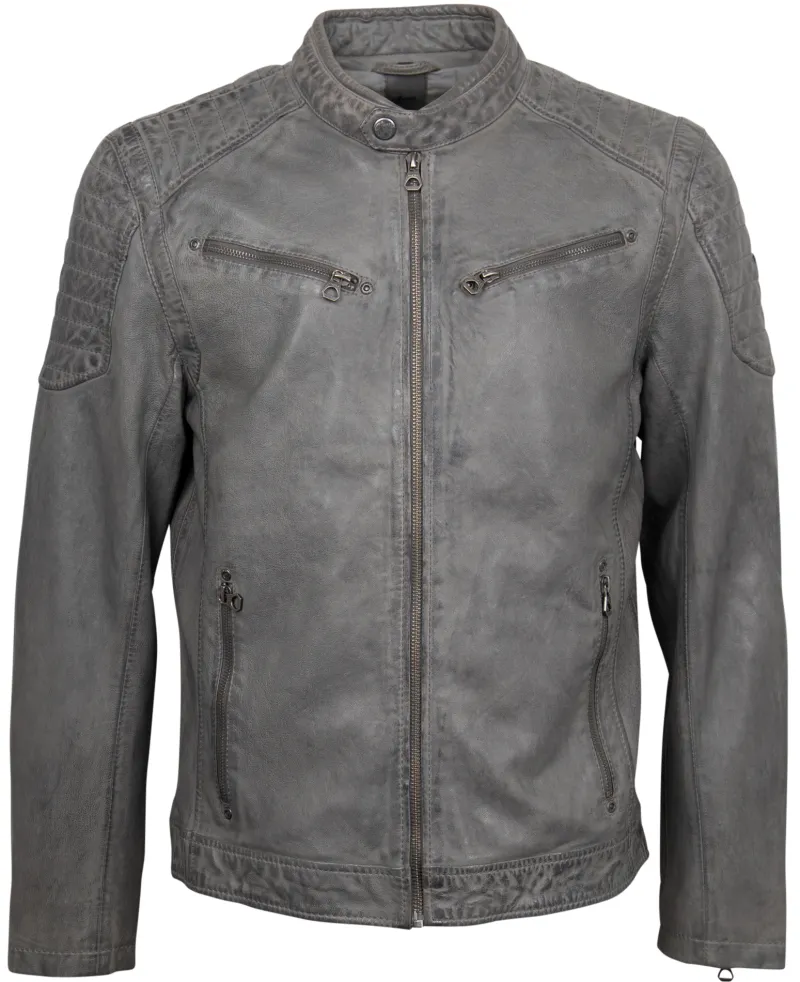 Entdecke die perfekte Kombination aus Stil und Funktionalität mit unserer grauen Lederjacke mit Stehkragen. Diese Jacke ist ein unverzichtbares Kleidungsstück für jeden modebewussten Mann, der Wert auf Qualität und zeitloses Design legt.