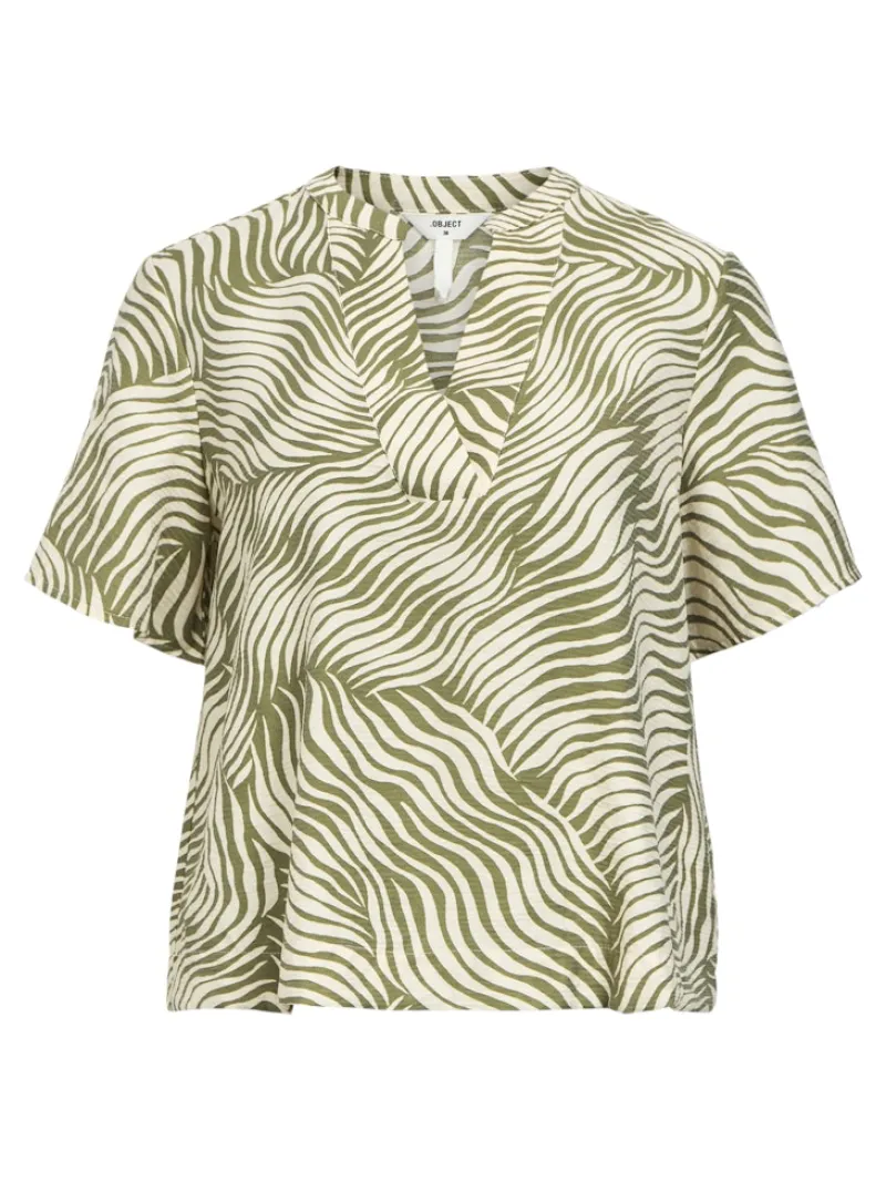 OBJKARINA S/S RE V-NECK TOP NOOS sandshell1