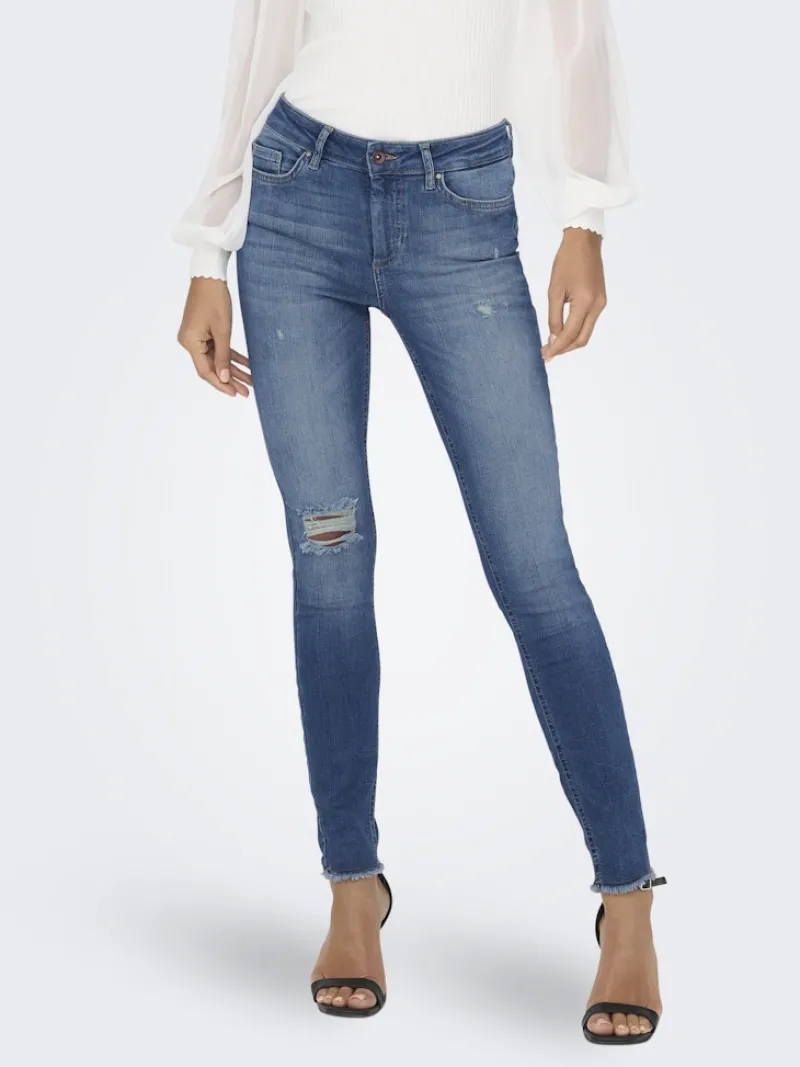 Mit einer mittleren Taille und einer knöchellangen Länge schmiegt sich die Only Damen Jeans von der Hüfte bis zum Knöchel eng an deine Beine. Sie betont deine Figur auf elegante Weise und bietet gleichzeitig hohen Tragekomfort.