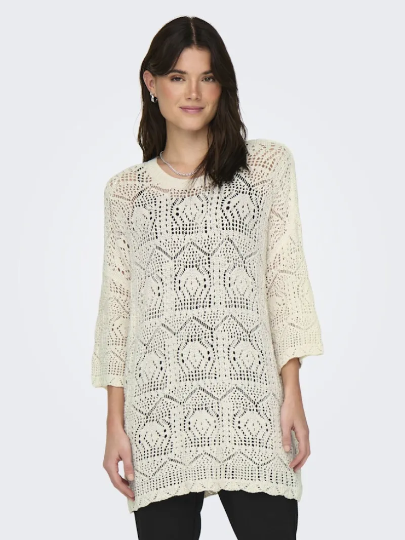ONLBEACHIE LIFE 3/4 LOOSE ONECK NOOS KNT cloud dancer