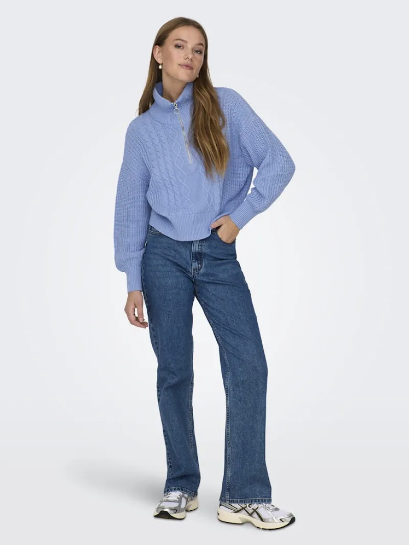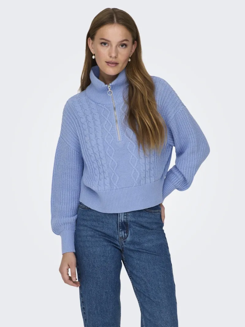 ONLDORITTA LS CABLE ZIP HIG NECK KNT grapemist
