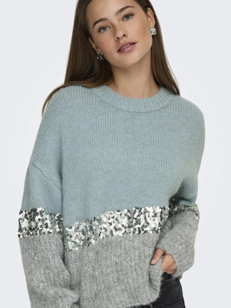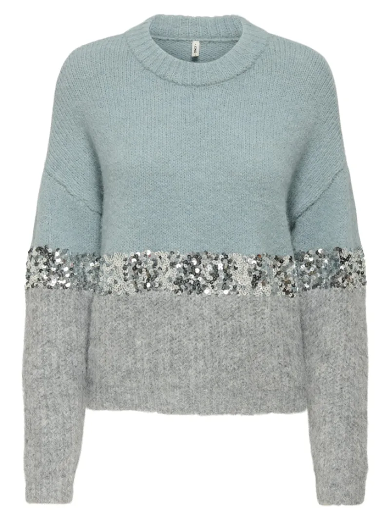 ONLMAINE LIFE LS SEQUIN BLOCK O-NECK KNT arona