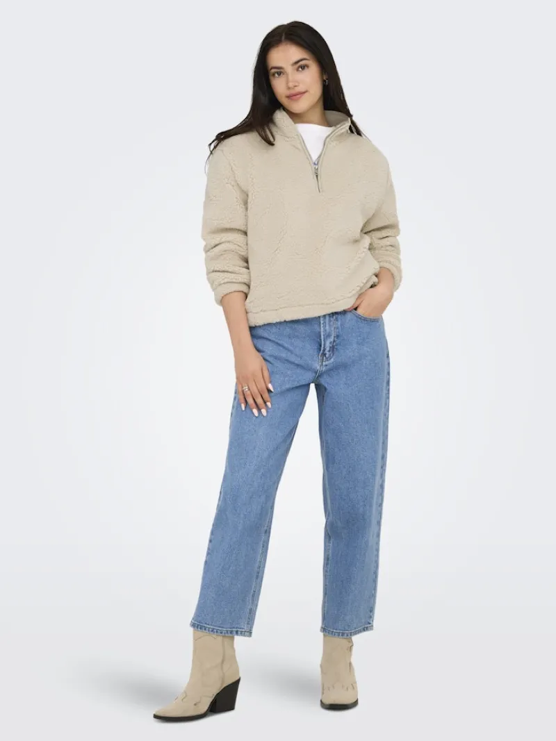 Der ONLNEW DALLAS L/S HIGHNECK ZIP SWT NOOS pumice stone ist ein stylisches und komfortables Sweatshirt für Damen. Hergestellt aus hochwertigem Fleece-Material, bietet es eine leichte, weiche und warme Passform mit einer flauschigen und aufgerauten Oberfläche – perfekt für gemütliche Tage im Freien oder entspannte Stunden zu Hause.