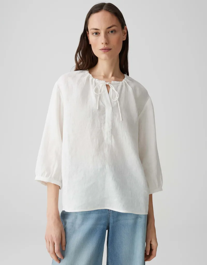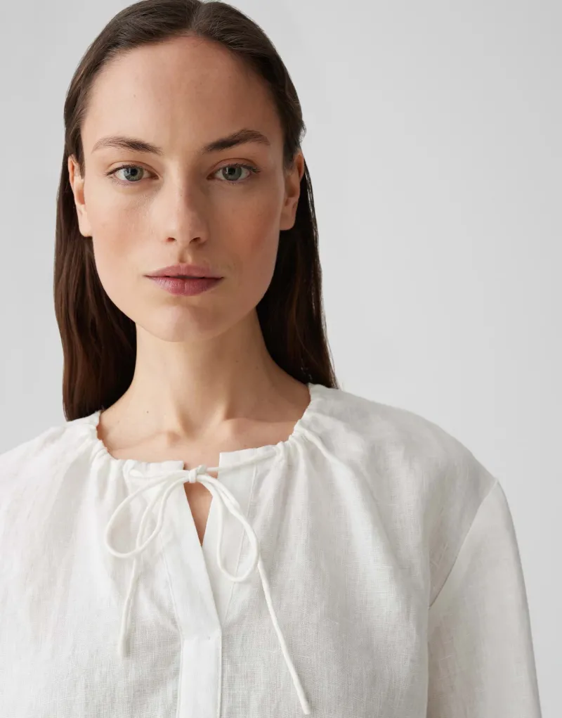 Das Fedora milk vereint modernen Stil mit hohem Tragekomfort. Die raffinierten Details wie die Kordel zum Binden und die Raffungen im Rücken machen es zu einem besonderen Highlight in deiner Garderobe. Zudem sorgt die Boxy Silhouette dafür, dass du dich den ganzen Tag über wohlfühlst.