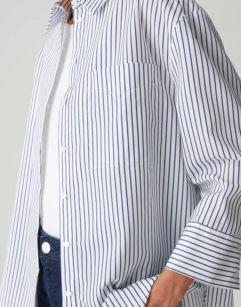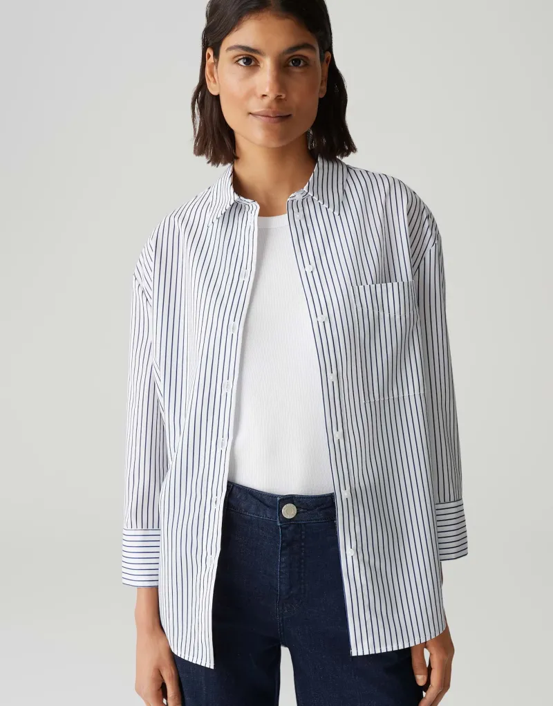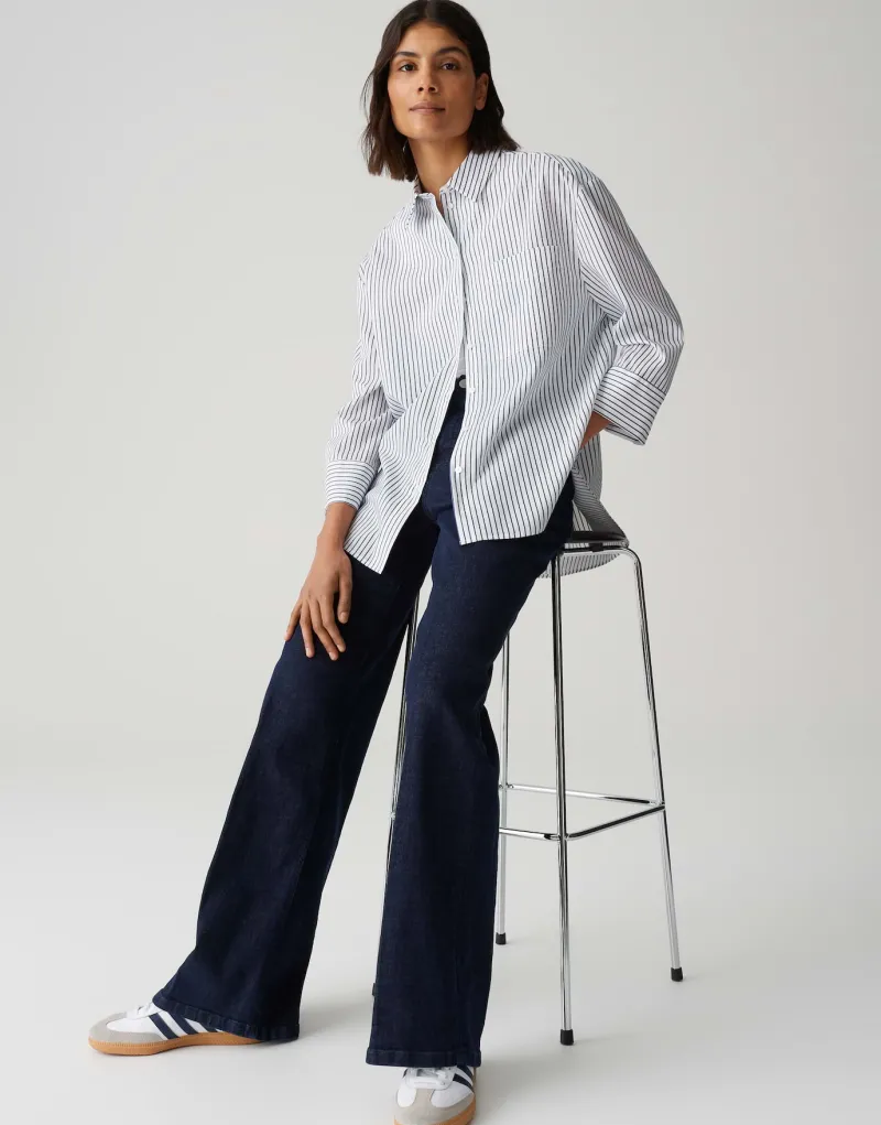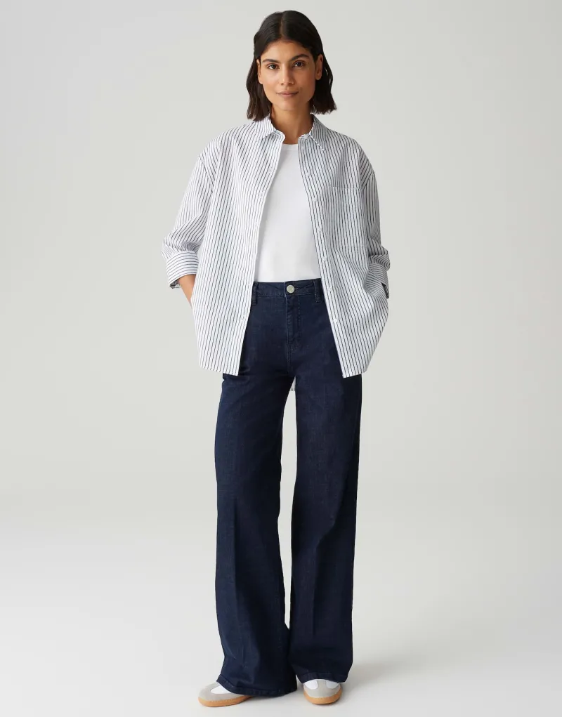 Entdecke die perfekte Mischung aus Stil und Komfort mit dem Frila coal blue. Dieses elegante Damenoberteil besticht durch seine oversized Passform und den geraden Schnitt, der dir eine moderne Silhouette verleiht. Der lang geschnittene Langarm mit Hemdblusenkragen sorgt für einen klassischen Look, während das weiche, fließende Design maximalen Tragekomfort bietet. Das zeitlose Streifenmuster und die große Brusttasche setzen modische Akzente und machen dieses Stück vielseitig kombinierbar – ideal für jede Gelegenheit.