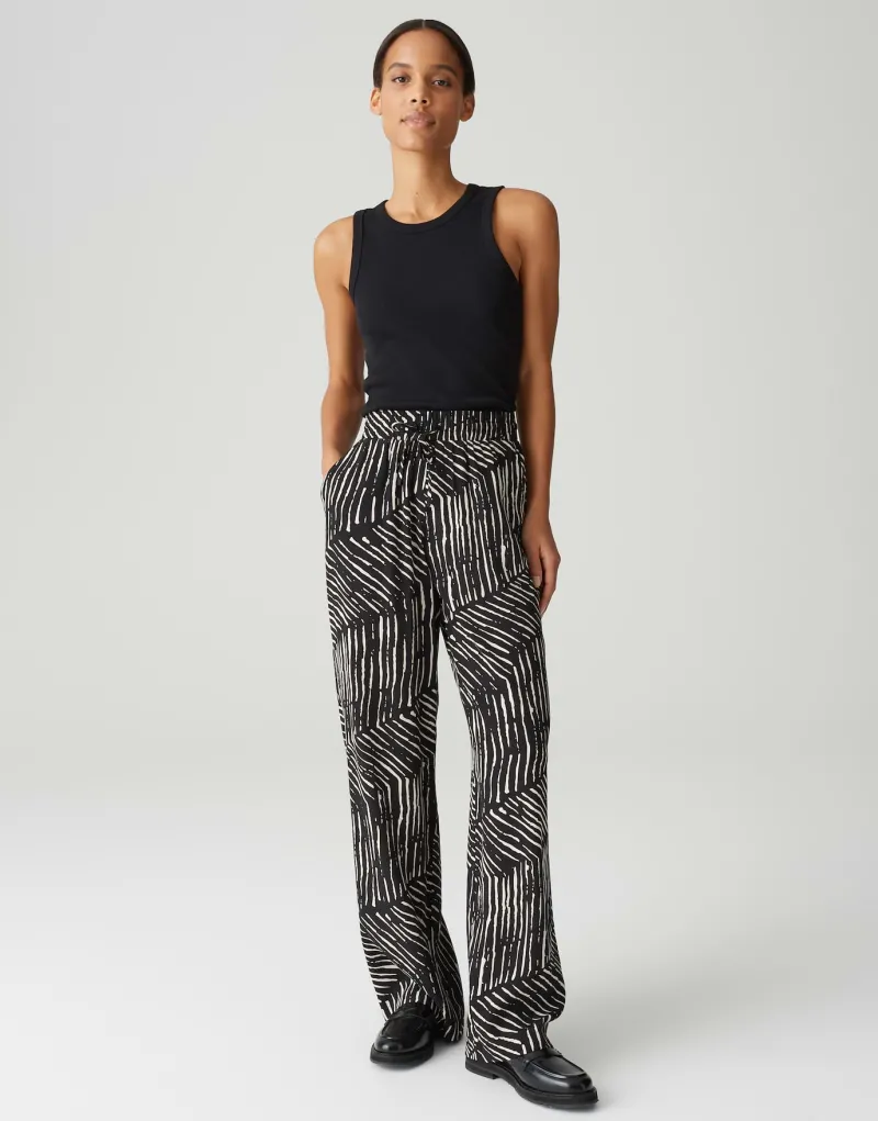 Entdecke die Marou Palm Leaves Black, die perfekte Hose für Damen, die sowohl Eleganz als auch Komfort schätzen. Mit ihrem weiten Schnitt am Oberschenkel und dem geraden Beinverlauf bietet diese Hose eine schmeichelhafte Passform und einen modernen Look, der sich vielseitig kombinieren lässt.