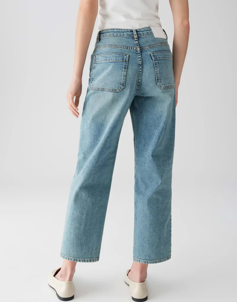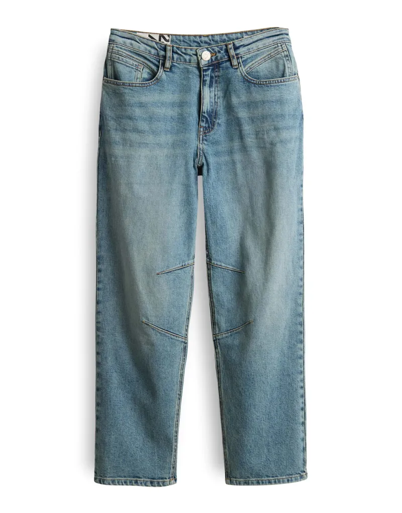 - Wie fällt die Jeans aus? Die Passform ist locker im Oberschenkel und leicht schmaler im Beinverlauf – ideal für einen modernen, bequemen Sitz.