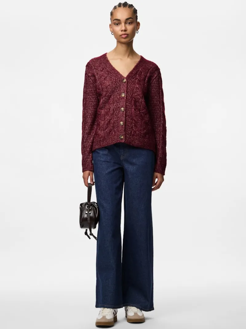 Erlebe ultimativen Komfort und zeitlosen Stil mit dem PCNINA LS V-NEck Knit Cardigan Noos BC in der eleganten Farbe Tawny Port. Diese Strickjacke für Damen vereint hochwertige Materialien mit einem modernen Design, das sich perfekt in jede Garderobe einfügt.