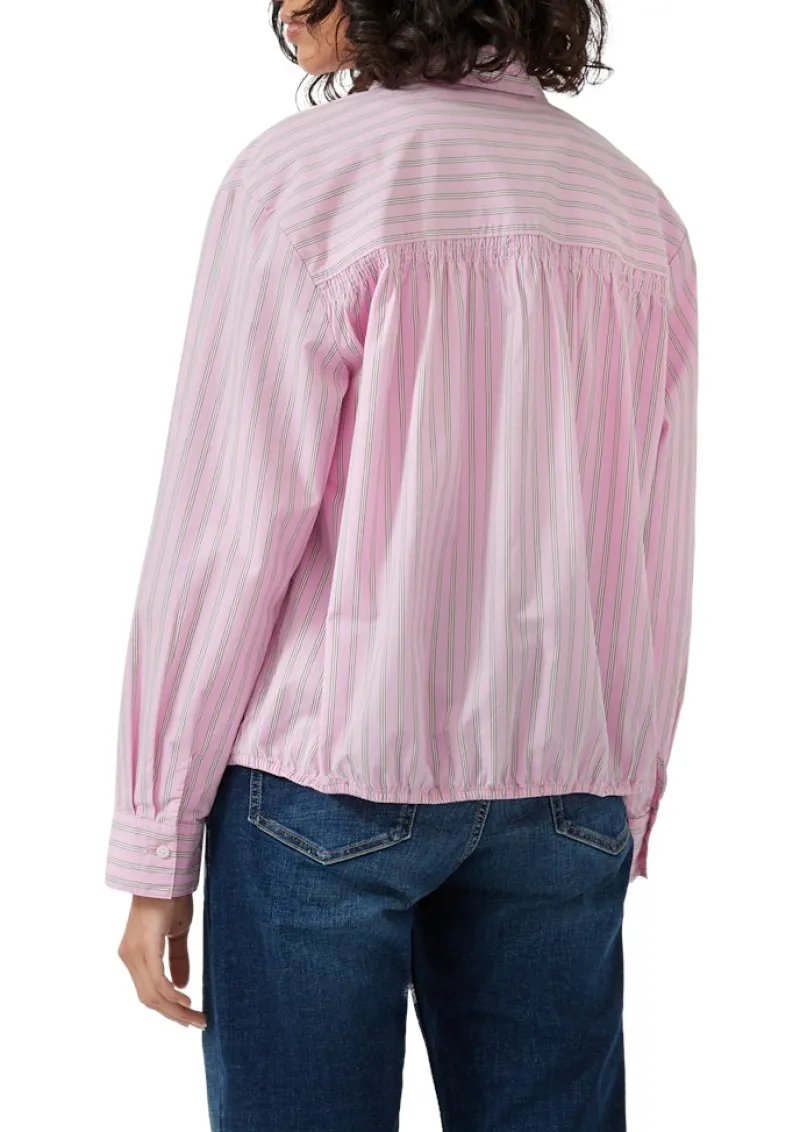 Diese lässige Bluse in pink|mehrfarbig bringt frische Leichtigkeit in deine Garderobe und überzeugt durch ihre entspannte Passform sowie feine, stilvolle Details. Hergestellt aus 100 % weicher Baumwolle, bietet sie dir besonders angenehmen Tragekomfort – perfekt für warme Tage oder das Layering im Frühling und Herbst. Die dezente Streifenoptik sorgt für einen verspielten, femininen Touch, während der Hemdkragen und die klassische Knopfleiste ihr einen eleganten Twist verleihen. Ein Highlight ist das raffinierte Rücken-Detail, das deinen Look von hinten zum Eyecatcher macht. Der elastische Saum sorgt darüber hinaus für eine moderne Silhouette.