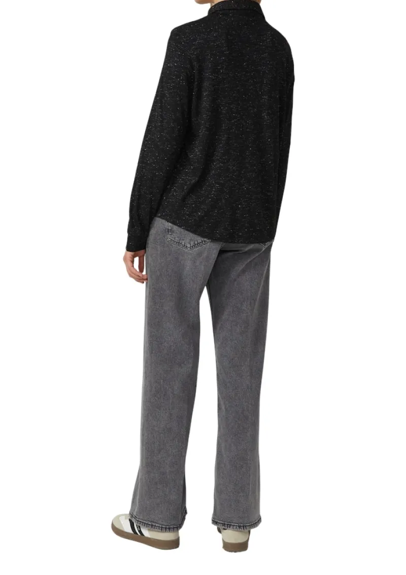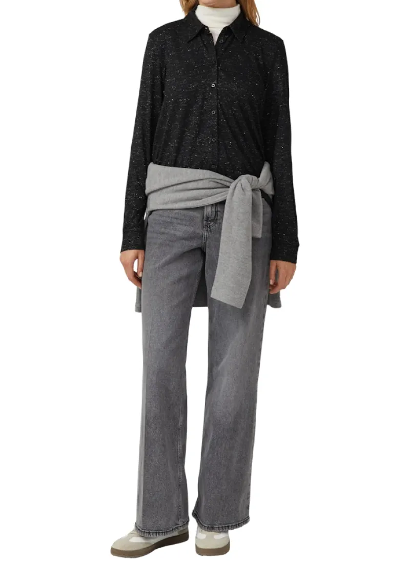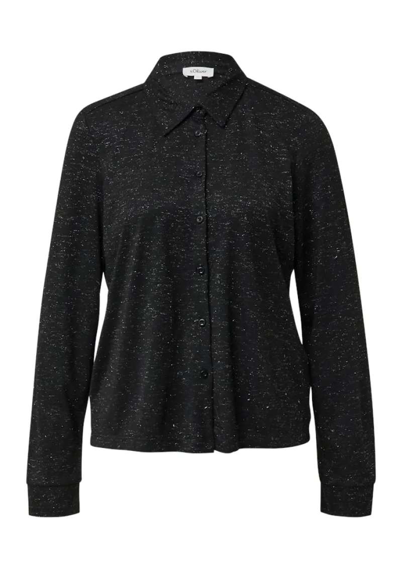 Glamouröse Jerseybluse mit schimmerndem Glitzergarn für deinen entspannten Casual-Look. Der verlängerte Rückensaum und der klassische Hemdkragen verleihen dem weichen Viskose-Mix eine elegante Note. Mit Knopfleiste im relaxten Fit – ideal, wenn du Komfort und einen Hauch Glamour kombinieren möchtest.