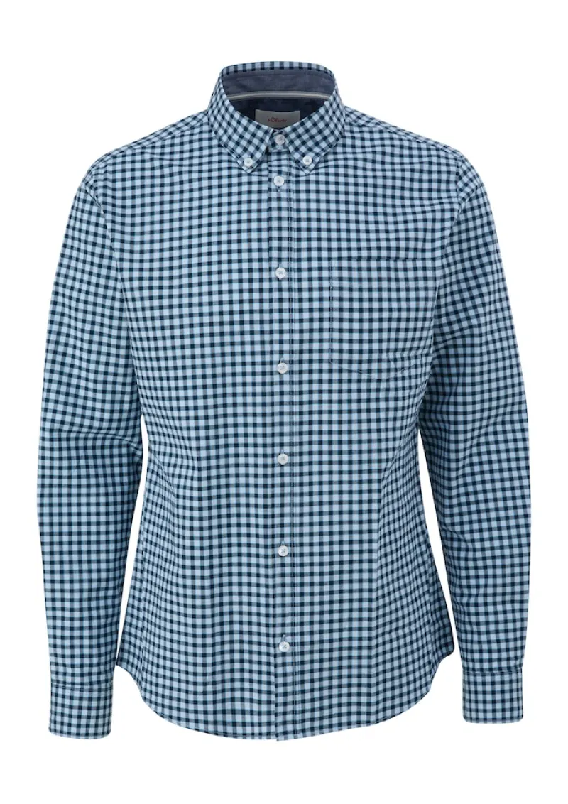 Tauche ein in zeitlosen Stil mit unserem Slim Karohemd aus Baumwollstretch. Mit einem Button-Down-Kragen, abgerundetem Saum und Brusttasche verkörpert es lässige Raffinesse. Hergestellt aus 94% Baumwolle und 6% Elasthan, bietet es bequeme Bewegungsfreiheit. Der Slim Fit sorgt für eine moderne Passform.