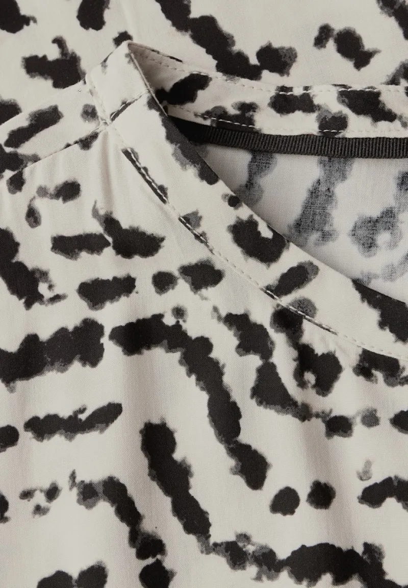 Unsere bedruckte Bluse besteht aus hochwertiger 100 % Viskose, die nicht nur angenehm weich auf der Haut liegt, sondern auch flexibel und atmungsaktiv ist. Der elastische Saum sorgt für einen sicheren Sitz und maximale Bewegungsfreiheit, sodass du dich den ganzen Tag über wohl fühlst.