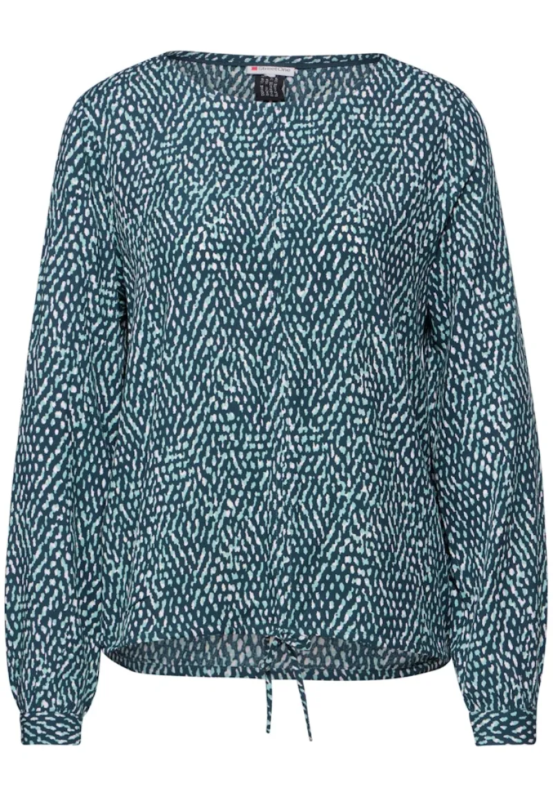 Die Bluse besticht durch ihren klassischen Rundhalsausschnitt, der eine elegante Ausstrahlung verleiht. Der verstellbare Tunnelzug am Saum ermöglicht es dir, die Passform individuell anzupassen und deine Figur schmeichelhaft zu betonen. Die langen Ärmel mit Bündchen sorgen für zusätzlichen Komfort und einen trendigen Look.