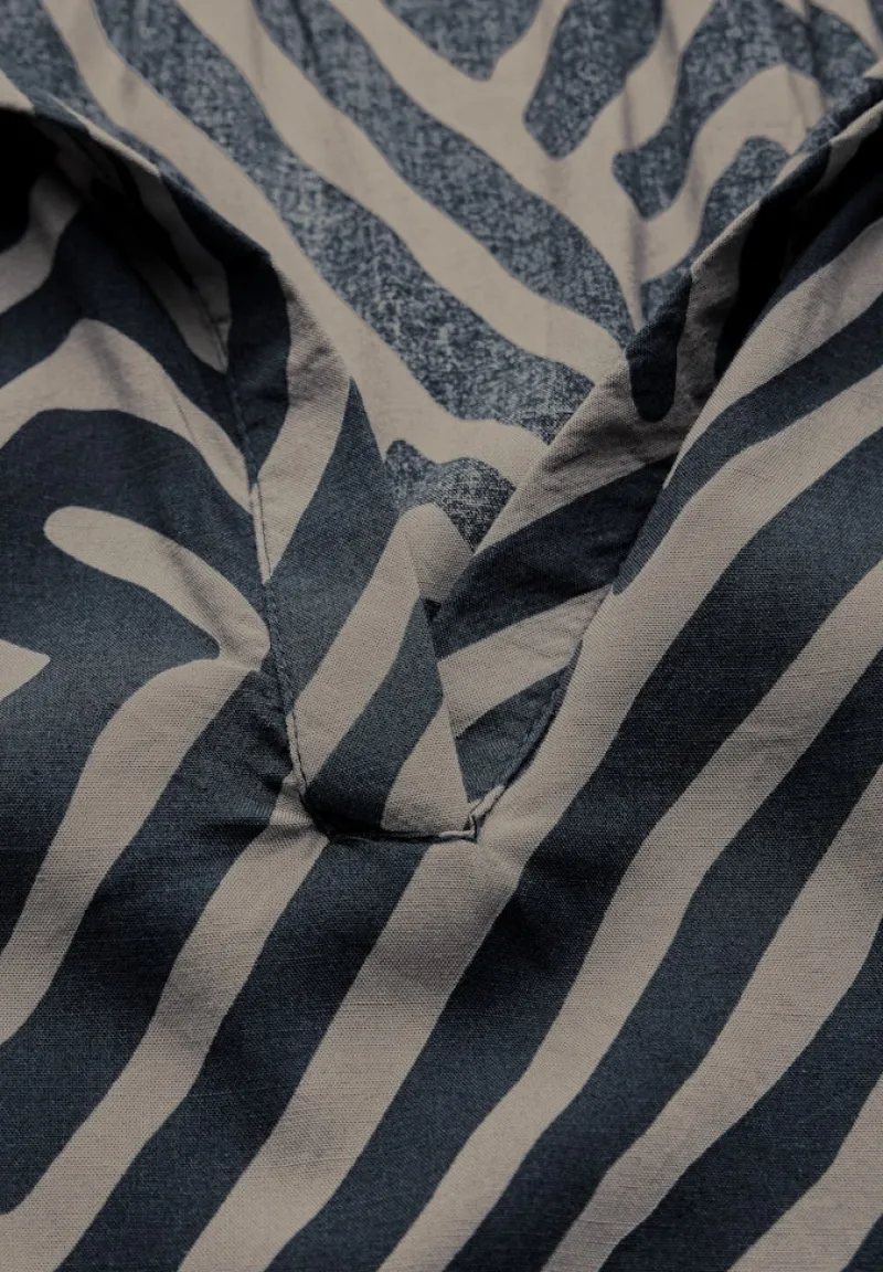 Entdecke die perfekte Mischung aus Stil und Komfort mit unserer Gemusterte Bluse cool vintage green. Diese Tunika für Damen besticht durch ihren geschlitzten Rundhalsausschnitt und ein einzigartiges grafisches Muster, das jedem Outfit einen modischen Twist verleiht.
