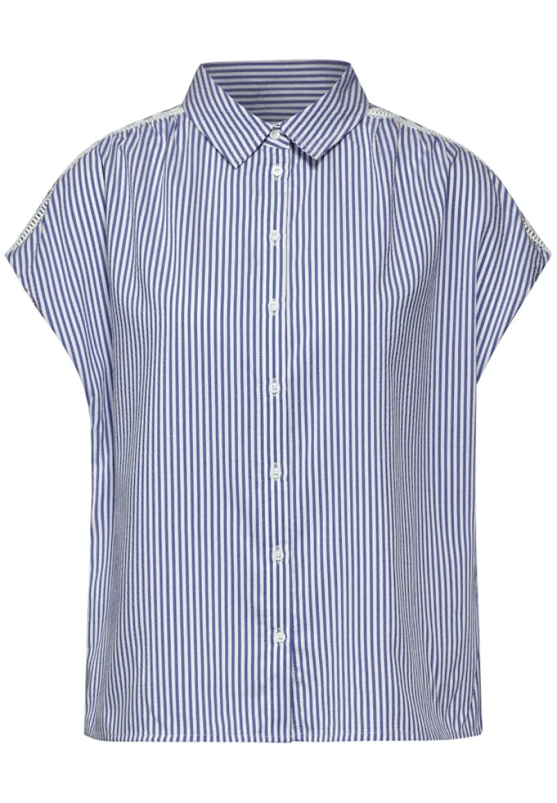 Das gestreifte Muster verleiht der Bluse eine zeitlose Eleganz, während der soft moss green Farbton für einen frischen und modernen Look sorgt. Mit Details wie einem femininen Kragen und feinen Knöpfen ist diese Bluse sowohl für den Alltag als auch für besondere Anlässe geeignet.