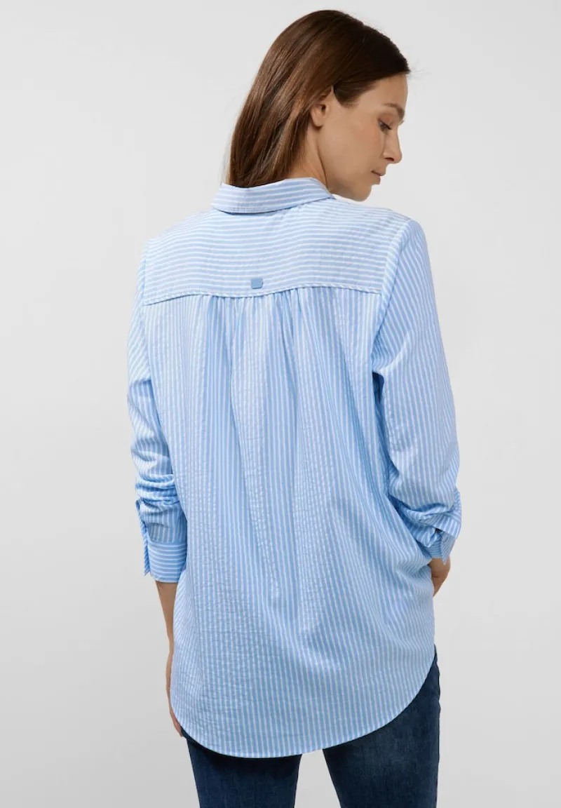 Jetzt ist der perfekte Zeitpunkt, um deine Garderobe mit unserer Seersucker Longbluse breath of air blue zu bereichern. Greif zu und erlebe stilvolle Eleganz, die deinen Alltag verschönert!