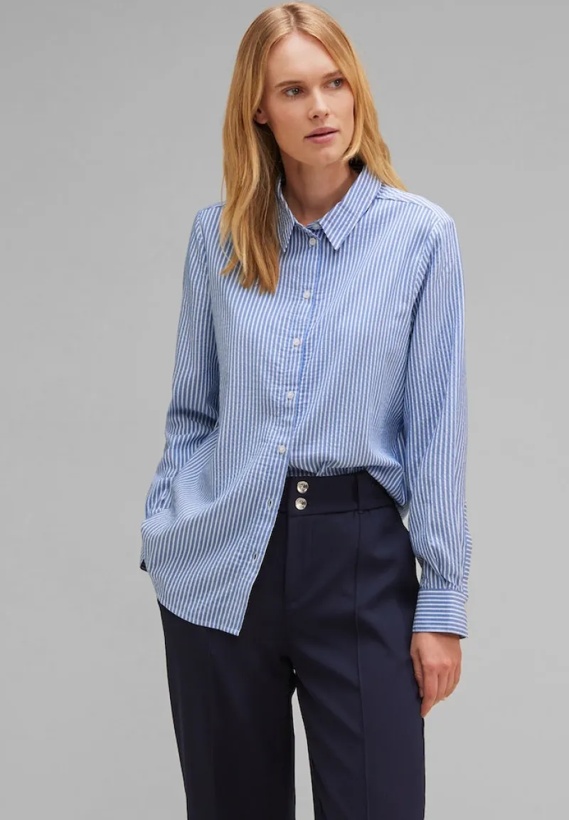 Verpasse nicht die Chance, deiner Garderobe einen modischen Touch zu verleihen. Bestelle jetzt die Seersucker Streifenbluse original blue und erlebe selbst, wie vielseitig und stilvoll sie ist!
